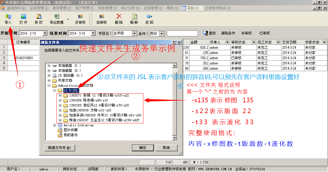[ ↑↑ 后期流程管理軟件 導(dǎo)入開單示例 ↑↑]