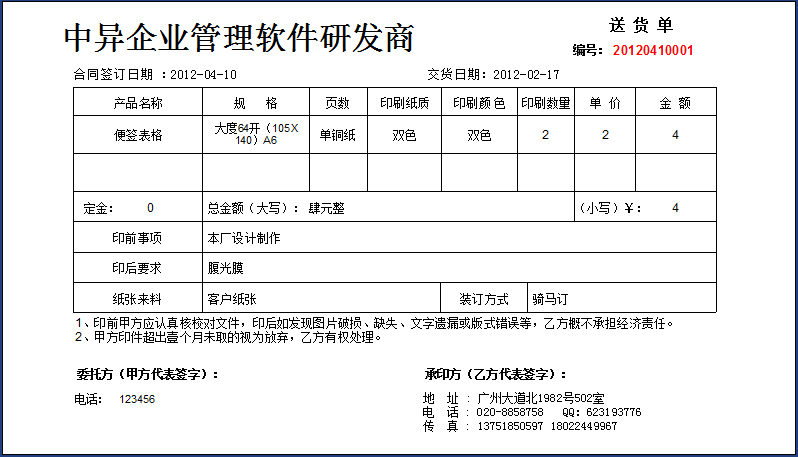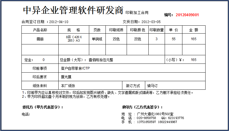 [ ↑↑ 印刷業(yè)務(wù)開單,合同打印 ↑↑]